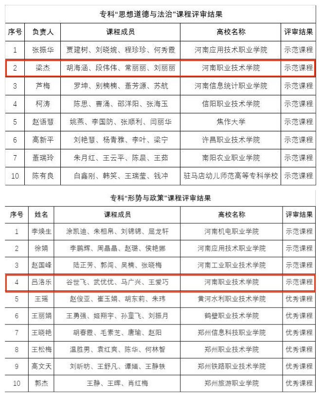 近日,中共河南省委教育工委办公室、河南省教育厅办公室下发了《关于高校思政课优秀课程资源评审结果的公示》,公司教师申报的2门课程全部被评为示范课程,申报的4门示范“金课”全部被评为特等奖,创历史最佳成绩。